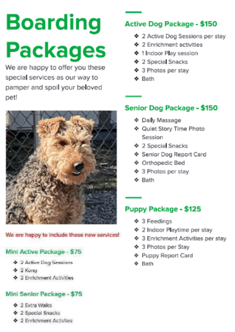 To make your dog stay even more special, would you like to add-on one of these special packages?